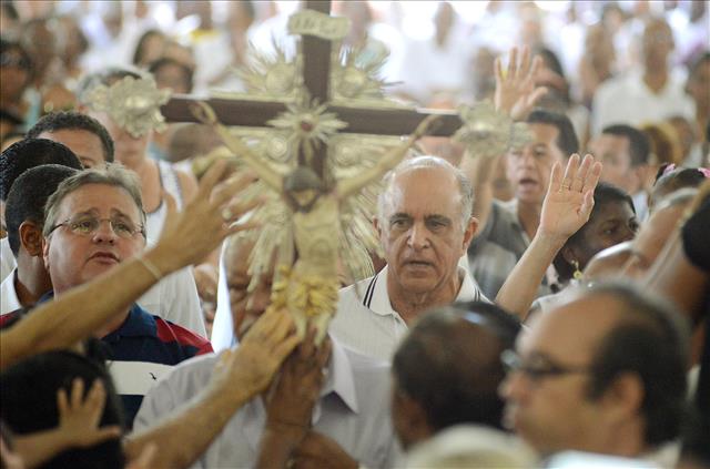 Souto, Joaci e Geddel participaram do ritual de entrada na igreja com a imagem do Senhor do Bonfim, quando todos entoaram o hino: “nesta Sagrada Colina, Mansão da Misericórdia, dai-nos a Graça Divina da Justiça e da Concórdia“. O Democrata não resistiu ao momento de grande emoção, chegando a ficar com os olhos marejados.