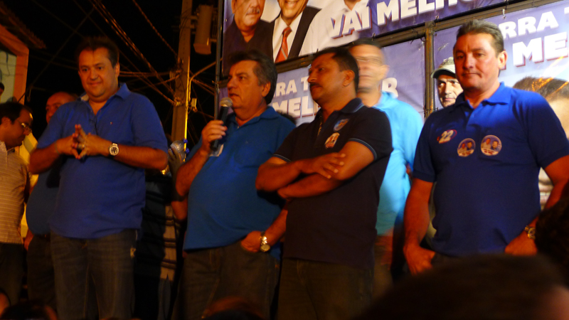 No palanque, além de Sebastião e seu vice Dr. Fonseca, estavam também ex-prefeito Geni Pereira (PSB) e o deputado estadual Augusto César (PTB), além dos candidatos a vereador da coligação. (Foto/divulgação)