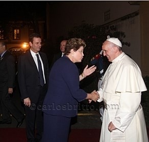 dilma e franciscoEm seu primeiro discurso no Brasil, diante da presidente Dilma Rousseff, de políticos e autoridades no Palácio Guanabara, no Rio, o Papa Francisco cobrou educação e meios materiais para que os jovens possam se desenvolver, e deixou claro que sua viagem ganhará forte caráter político. Antes mesmo de desembarcar, ainda no avião que o levou ao Brasil, o papa fez um ataque direto às receitas dos governos para lidar com a crise internacional. E alertou para o risco de se criar uma geração perdida diante da incapacidade de os jovens encontrarem trabalho.