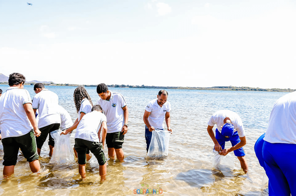 Em Sobradinho, no norte da Bahia, a Secretaria Municipal de Educação – em parceria com a Codevasf e a Secretaria de Agricultura e Meio Ambiente – realizou na manhã de quinta-feira (24) no balneário do Chico Periquito a soltura de mais de 15 mil alevinos. O peixamento contou com a presença dos estudantes da Escola de Gestão Compartilhada Maria José de Lima Silveira e do Centro Educacional de Sobradinho (CES). O piau e o pacamã foram as duas espécies nativas de alevinos escolhidas para voltar às águas do Velho Chico.