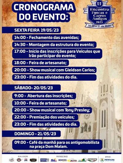 Nos três dias do evento serão expostos mais de 200 automóveis que marcaram época, para deleite de quem se fizer presente na Praça Dom Malan. Entre as raridades estão o Cadillac Deville 1959, um Thunderbird 1966, Mercury 1972 e Impala 1960 – entre outros. Este já é considerado o maior evento realizado de fuscas e carros antigos no Sertão do São Francisco.