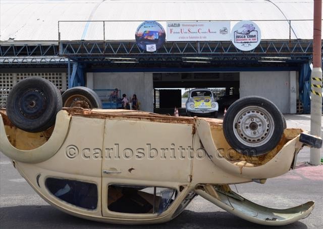 O 3º Encontro de Fuscas aconteceu no pavilhão do Centro de Convenções Senador Nilo Coelho, no Centro da cidade. Logo na entrada do evento, os visitantes se surpreenderam com um fusca virado (foto).