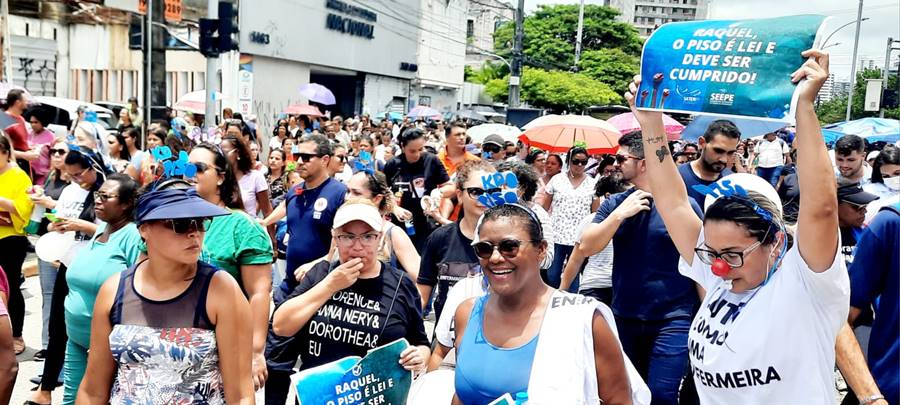 Os profissionais participaram de uma caminhada que seguiu pela Avenida Conde da Boa Vista e encerrou no Palácio do Campo das Princesas. Outras mobilizações para reivindicar a aprovação do piso salarial da enfermagem também ocorreram nos municípios de Caruaru, Palmares, Sertânia, Serra Talhada, Garanhuns e Petrolina.