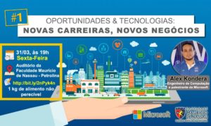 O evento será aberto e as inscrições podem ser realizadas acessando aqui. O investimento será de 1kg de alimento não perecível, que será doado a instituições sociais da região. No encerramento serão sorteados brindes da Microsoft e ingressos para show de Alceu Valença e Flávio Leandro (01/04).