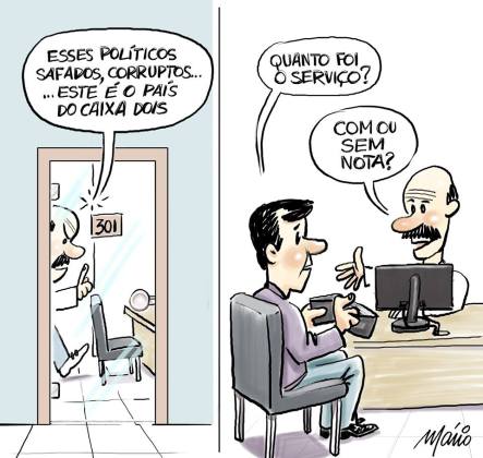 O profissional caracterizado na charge está certíssimo, pois com a carga tributária quase soviética que temos, somada às regulações asfixiantes, onerosas e de caráter proibitivas, empreender torna-se um verdadeiro martírio. Ou faz uns truques contábeis para sobreviver, ou paga todos os impostos e cava a própria cova.
