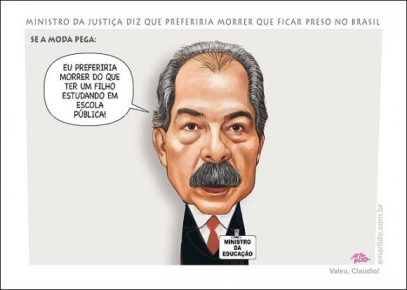 O ministro ao criticar o sistema carcerário teve um rompante de honestidade. Tomara que a moda pegue sim. Reconhecer a falência de certas instituições já é um grande passo para a mudança. Bom mesmo seria político e dependentes fossem obrigados a usar os serviços públicos. Nada de escola particular, nada de plano de saúde, nada de segurança privada enfim, viajei…