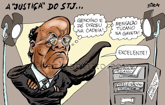 A quem interessar possa, Joaquim Barbosa é Ministro do Supremo Tribunal Federal (STF), e não do Superior Tribunal de Justiça (STJ), como faz menção a charge. Fica a dica!