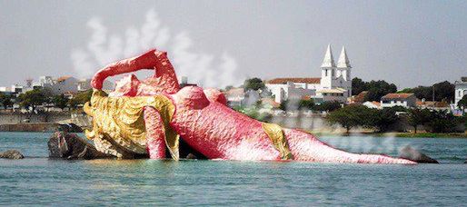 Isso não ia sair do nosso lindo rio? Desculpe-me o artista criador da obra, mas achava nosso rio mais lindo sem ela! Ela combina perfeitamente na picina da casa do prefeito deveria enviar para la…