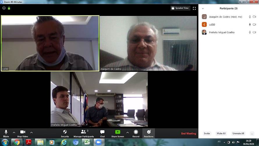 Os impactos econômicos provocados pela pandemia do novo coronavírus (Covid-19) no comércio de Petrolina foram analisados numa reunião realizada ontem (30/04) entre o presidente do Sindilojas, Joaquim de Castro, o da Câmara de Dirigentes Lojistas (CDL), Manoel Vilmar,  o diretor da CDL Valdivo Carvalho e o prefeito Miguel Coelho. A conversa aconteceu através do aplicativo Zoom.