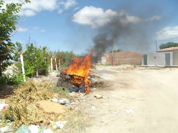A área, localizada entre as ruas 1 e 6 do bairro, próximo ao Raso da Catarina, vem servindo de depósito de entulhos e objetos velhos, como sofás. Como se não bastasse, os moradores ainda põem fogo no que jogam fora, provocando mau cheiro e muito aborrecimento naquela comunidade. Um absurdo. (foto: Sérgio Lopes)