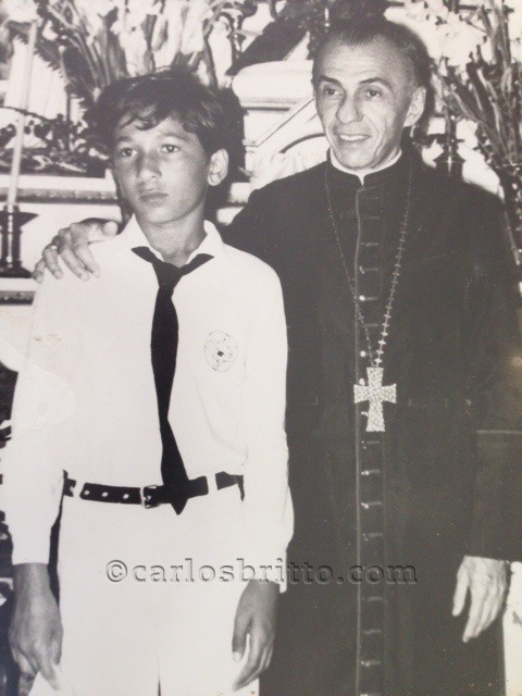 No Éramos assim de hoje uma foto santa…Ou quase. O empresário da Info Rio Sistemas, João Onofre posando para foto em sua primeira comunhão ao lado do então bispo de Petrolina Dom Gerardo Andrade Pontes.