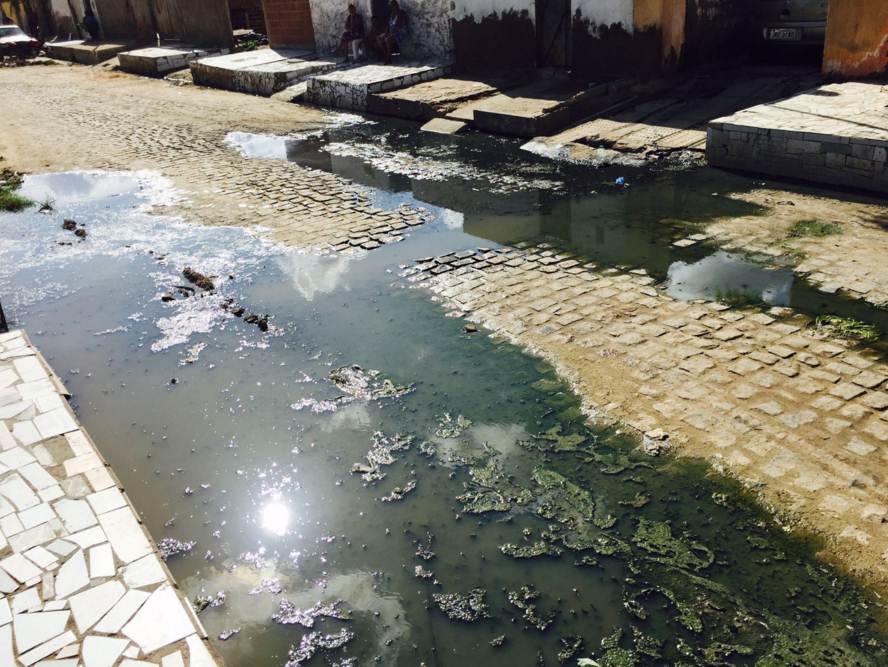 O cenário visto na Rua 14 do Bairro Pedro Raimundo, zona oeste de Petrolina, tem preocupado os moradores. Um esgoto estourado no meio da via interrompe a passagem de pedestres e até de veículos.