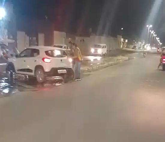 Na noite de ontem (12), o condutor de um carro de passeio acabou caindo dentro do esgoto, sendo necessária a ajuda de populares para que conseguisse sair. Após o fato, um morador sinalizou de forma improvisada, com um tronco de árvore, o buraco que se formou no local.