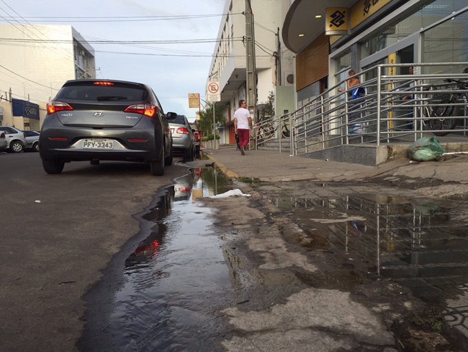 Esgoto estourado incomoda transeuntes no Centro de Petrolina
