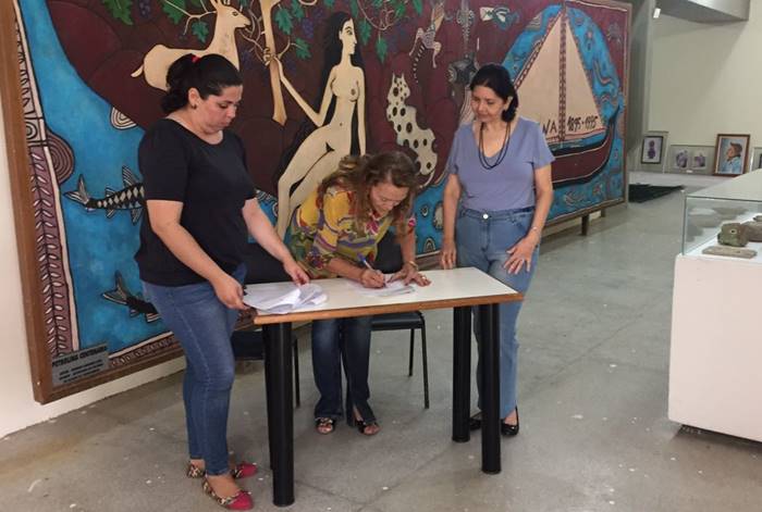 Após a assinatura do contrato, Maria Elena lembrou que o trabalho da museóloga inicia uma nova fase do Museu do Sertão, previsto para ser reaberto no final de outubro. As informações são da assessoria. (Foto/divulgação)