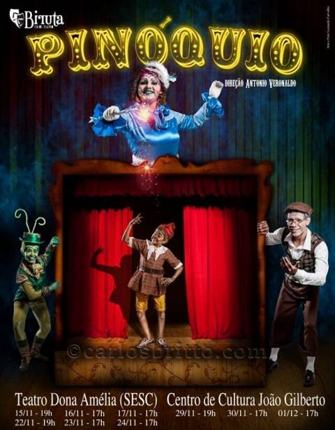 Com direção de Antonio Veronaldo Martins, o espetáculo traz os personagens Gepeto (o velho carpinteiro que deseja um filho e faz seu boneco de pedaço de madeira), o grilo falante, a raposa, o gato, o Papa Fogo e a Fada Azul. Todos ganham forma a partir de figurinos elaborados e maquiagem detalhada.