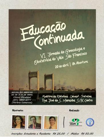 Ainda estão abertas as inscrições para a 6ª Jornada de Ginecologia e Obstetrícia do Vale do São Francisco, que acontece neste sábado (22) em Petrolina.