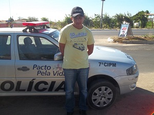 A dona de casa percebeu o golpe e acionou os policiais da 7ª CIPM, a quem o acusado confessou ter aplicado o mesmo golpe antes em outras pessoas e já haver cumprido pena por vender perfumes falsificados. Com Alisson foram encontrados dois cartões do Banco do Brasil, um deles pertencente a Maria Cecilda. Ele foi conduzido à delegacia de Polícia Civil de Petrolina, onde foi autuado em flagrante delito pelo crime de estelionato. (foto: 7ª CIPM/divulgação)