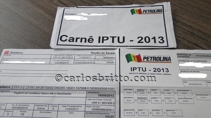 Estelionatários agem em Petrolina fazendo cobrança indevida do IPTU 2013