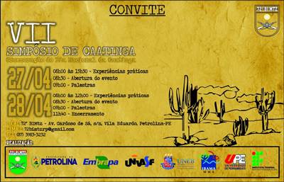 O 72º Batalhão de Infantaria Motorizado (72 BIMtz) sediará nesta quinta (27) e sexta-feira (28) um evento em comemoração ao Dia da Caatinga. O 7º Simpósio conta com a parceria da Embrapa Semiárido e terá uma extensa programação que inclui palestras, exposições e visitas ao parque zoobotânico.