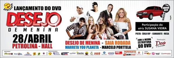 Petrolina será palco, neste sábado (28), do lançamento oficial do DVD “Cumplicidade”, quarto registro audiovisual da banda Desejo de Menina, que acontecerá no Petrolina Hall, localizado na zona oeste da cidade.