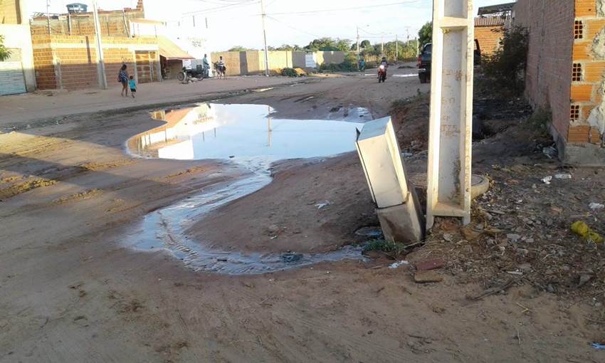 Outro problema do setor foi registrado no Terras do Sul, zona norte da cidade, mas esse diz respeito ao vazamento na tubulação (foto abaixo), que há quatro dias desperdiça água limpa nas Ruas 4 e 9. Sobre o assunto, a Compesa disse já ter acionado o setor responsável.