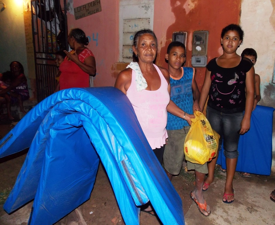 As assistentes sociais da SEDIS estiveram durante o dia cadastrando as famílias em estado emergencial de vulnerabilidade e no período da noite fizeram as entregas de colchões e cestas básicas a 30 famílias. Uma das atendidas foi a família de dona Tânia de Araújo, encaminhada para a Escola Municipal Ludgero Costa devido a casa ter sido invadida pelas águas das chuvas e danificado boa parte dos móveis. “A equipe da Prefeitura veio nos dar apoio e estão nos levando para dormir na Escola. Tem dois anos que moro aqui e nunca tinha passado por isso. Estou preocupada se continuar chovendo, porque nossa casa é baixa e água da rua invade a casa”, disse a moradora.