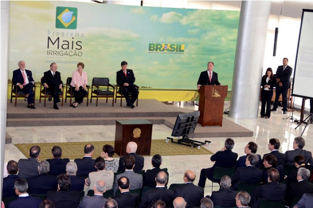 Diante da presença de vários governadores de estado, entre outras autoridades, o ministro da Integração Nacional, Fernando Bezerra Coelho, e a presidente Dilma Rousseff lançaram nesta terça (13) no Palácio do Planalto, em Brasília (DF), o programa “Mais Irrigação”, que vai investir R$ 3 bilhões com recursos do Programa de Aceleração do Crescimento (PAC) na ampliação e modernização de cerca de 60 áreas em todo o país.