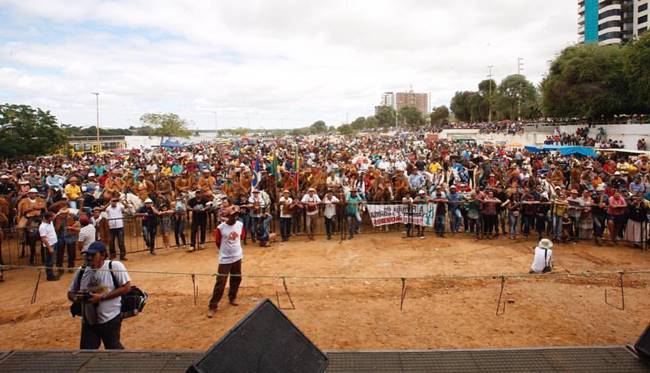 Trajados com gibão e chapéu de couro, os vaqueiros, antes da cerimônia, saíram do Estádio Paulo Coelho em cavalgada pelas ruas de Petrolina. A vaqueirama, que havia dormido a noite anterior no campo de futebol, percorreu cerca de 5 km até a chegada no palco montado pela prefeitura, próximo à orla do São Francisco.