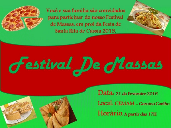 O Centro Maria Auxiliadora (CEMAM), no bairro Gercino Coelho, zona leste de Petrolina, realizará um Festival de Massas cuja renda será revertida em prol da Festa de Santa Rita de Cássia.