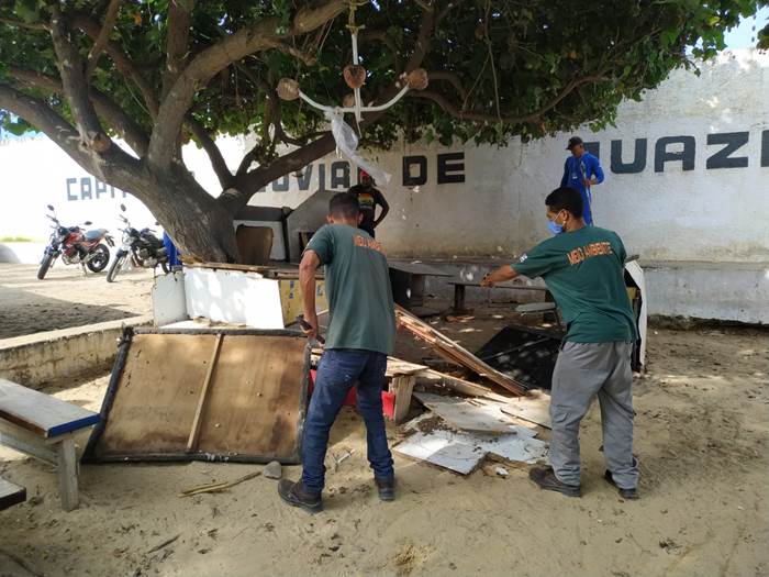 A equipe operacional e os fiscais de postura da Secretaria de Meio Ambiente e Ordenamento Urbano (Semaurb) realizaram em Juazeiro (BA), nesta semana, uma atividade de desobstrução da faixa de areia da Orla II, conhecida como ‘prainha’. Foram recolhidas estruturas de madeira e barracas irregulares, além de outros materiais. A ação pretende dar mais acesso aos pedestres e banhistas e melhorar o aspecto paisagístico do local.