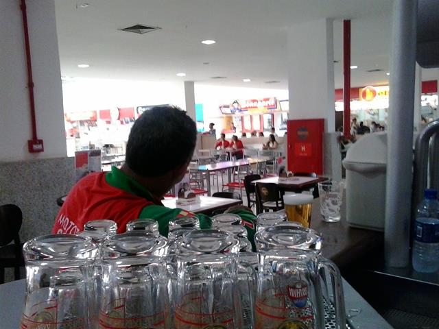 O flagrante acima mostra uma cena, no mínimo, absurda: um mototaxista degusta alguns chopinhos, tranquilamente, na praça da alimentação do River Shopping.