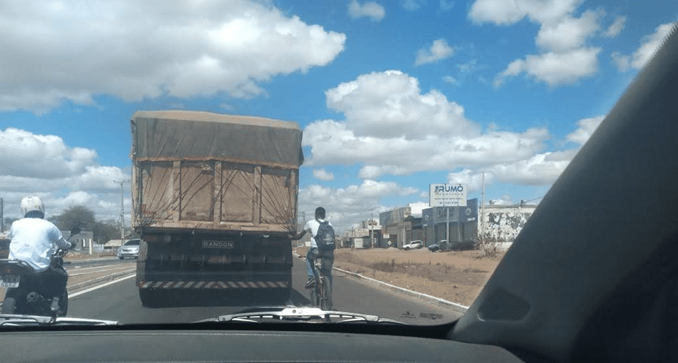 A cena já é rotineira em Petrolina: um ciclista se arrisca perigosamente pegando ‘carona’ na traseira de um caminhão. Vários fatos desse tipo já foram registrados pelo Blog, e pelo visto esse não será o último.