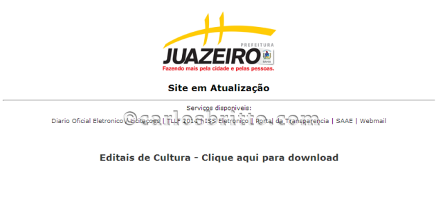 Ao acessar a página eletrônica www.juazeiro.ba.gov.br o internauta terá acesso apenas a alguns links como Diário Oficial Eletrônico, Licitações, TLLF 2014, ISS Eletrônico, Portal da Transparência, SAAE e webmail.
