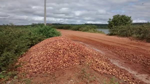 Isso é um crime contra a humanidade e contra a natureza. Não sei se as frutas foram jogadas de propósito ou acidental, embora se foi acidental o causador devia fazer sua retirada de forma adequada, pois da forma que está pode trazer sérios problemas aos produtores de frutas com a tão combatida mosca-da-fruta.