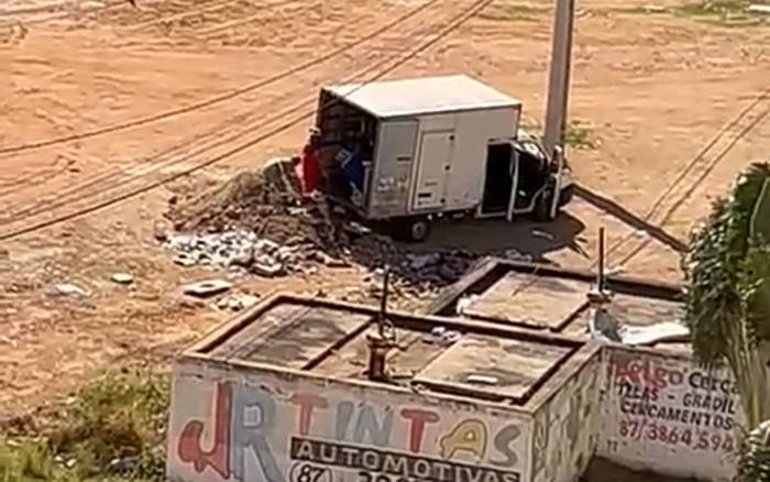 Funcionários de empresa são flagrados despejando entulhos na Orla II de Petrolina