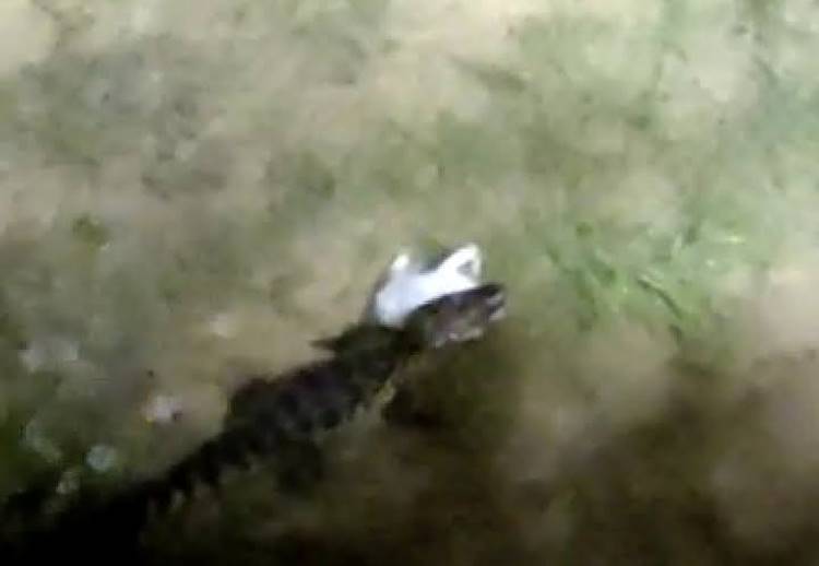 Um gatinho, que não se sabe como foi parar naquele local, acabou virando comida de jacaré. É possível, inclusive, que o réptil seja o mesmo. Depois de cravar as presas no gato, o jacaré desaparece nas águas do Velho Chico ao ser assustado pelo internauta. Apesar da cena impressionar muita gente, o que se vê é apenas o instinto de um animal em busca de comida.