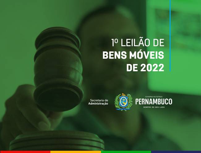 A Secretaria de Administração (SAD) de Pernambuco realizará no próximo dia 28, a partir das 9h30, o primeiro leilão de bens móveis deste ano, pertencentes ao patrimônio do Estado. O leilão terá um único lote, contemplando dois veículos e sucatas de diversos materiais. A SAD espera arrecadar, no mínimo, R$ 70 mil. O pregão será realizado na modalidade online, por meio do endereço eletrônico.