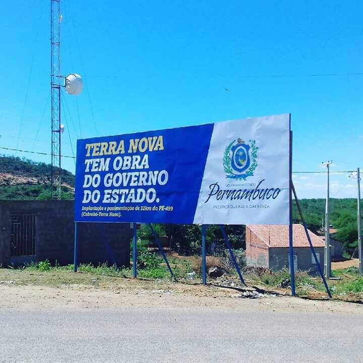 Na cidade de Terra Nova (PE), Sertão do São Francisco, o Governo do Estado faz propaganda da estrada PE-499, sem nem a obra ter sido iniciada.