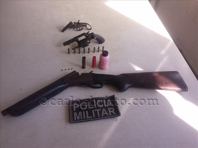 O crime, ocorrido no último dia 18, teve como vítima Agenor Conceição Costa. O grupo estava escondido na Fazenda Frade, também em Riacho Seco. Com os acusados a polícia apreendeu uma espingarda calibre 28 e um revólver, que estavam com Raimundo Nonato, além de uma garrucha com Agnélio. Depois de ser detido, Nonato acabou confessando o assassinato de Agenor. Todos foram encaminhados à Delegacia de Polícia Civil (DPC) local, juntamente com as armas e uma moto CG 125 vermelha, placa KIJ-5826, de Cabrobó. (Foto: 45ª CIPM/divulgação)