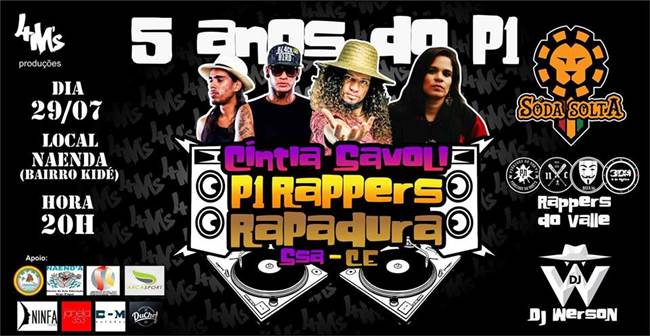 A festa que marca os primeiros cinco anos do grupo será no Naend’a, Bairro Kidé, no próximo dia 29/07, a partir das 20h. Além do P1 Rappers, o evento contará com apresentações de atrações locais como DJ Werson, a banda Soda Solta e dos grupos Rua 16, Novo Ciclo Rap e 3 da Matina.
