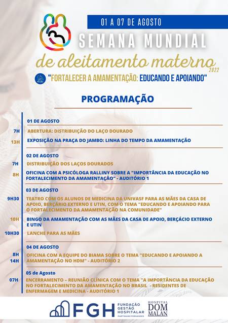 O Hospital Dom Malan (HDM) iniciou ontem (1) mais uma Semana Mundial de Aleitamento Materno. O tema da ação deste ano é ‘Fortalecer e Amamentar: Educando e Apoiando’ (confiram a programação abaixo).