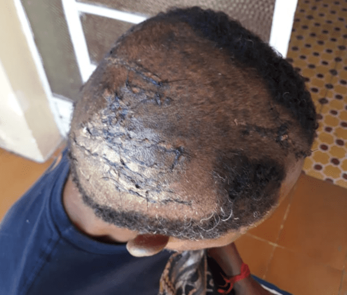 A foto acima mostra o resultado da agressão. O homem continua tomando medicamentos. Segundo um comunitário da rua, que preferiu manter o anonimato, a agressão foi motivada porque alguns moradores confiam na vítima e pedem para ele “ficar de olho” nos carros que estacionam na via pública, já que ele cuida de um imóvel no local.