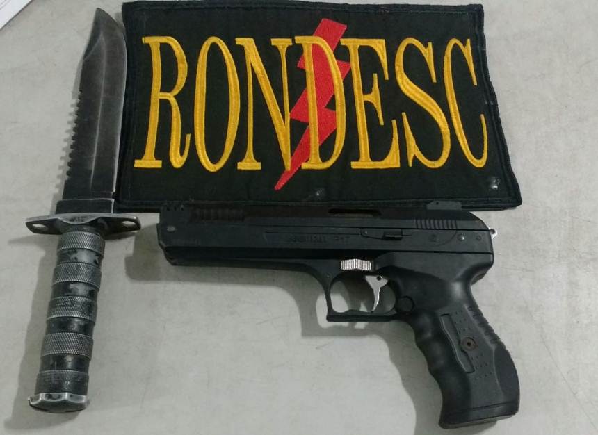 A equipe do 5°BPM foi acionada ao local após denúncias de que um homem estava brigando com moradores e portando uma arma de fogo. Quando os policiais chegaram ao local o suspeito já estava de saída em sua motocicleta, visivelmente embriagado e portando um simulacro de arma e uma faca. Moradores relataram aos policiais que o homem estava cometendo desordem e demonstrava agressividade.