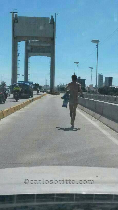 homem nuEra só o que faltava: leitores do Blog flagraram nesta terça-feira (27) um homem correndo completamente nu pela Ponte Presidente Dutra.