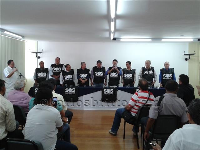 Com o nome do movimento no colete (‘SOS Municípios), ficaram parecendo guarda-costas de suas prefeituras.