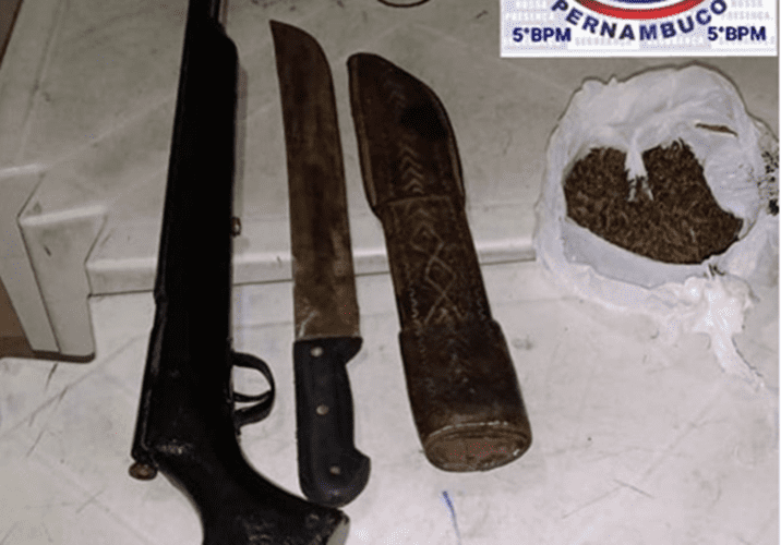 Na madrugada deste domingo (15) dois homens foram presos por policiais militares do 5º BPM no N-4 do Perímetro Irrigado Senador Nilo Coelho, zona rural de Petrolina. Eles são acusados de estupro e posse ilegal de arma de fogo e arma branca (facão).
