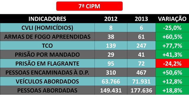 – O efetivo da 7ª CIPM está de parabéns pelos índices alcançados e que sirvam de incentivos para novas conquistas.