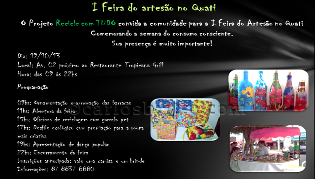Promovida pelo Projeto ‘Recicle Tudo’, a Feira também marca o Dia do Consumo Consciente, que foi comemorado na última segunda-feira (15). A data, instituída pelo Ministério do Meio Ambiente, chama a atenção da população sobre a necessidade de consumir respeitando os limites do planeta.