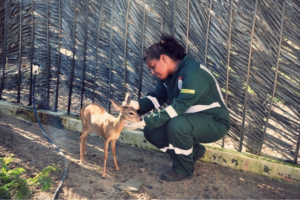 Esta semana chegou nas instalações do Centro de Triagem de Animais Silvestres do Centro de Conservação e Manejo de Fauna da Caatinga (Cemafauna), um dos 38 programas básicos ambientais do Projeto de Integração do São Francisco (PISF) com as Bacias Hidrográficas do Nordeste Setentrional promovido pelo Ministério da Integração Nacional, uma jovem fêmea da espécie Mazama gouazoubira, conhecida popularmente como veado-catingueiro.